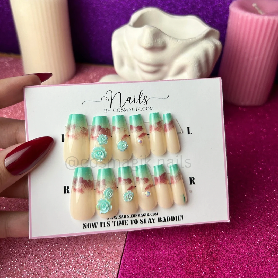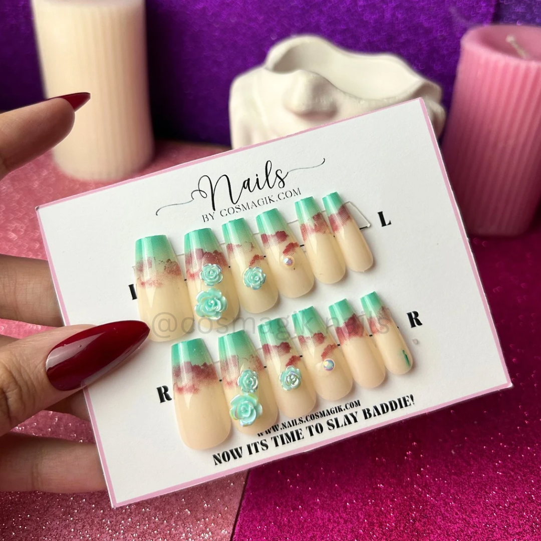 This is your new go-to when you want a nail set that’s not too loud, but still screams style. Soft pastel tones, minimal design, and a glossy finish make it perfect for brunches, day weddings, campus glam, or even office baddie mode.