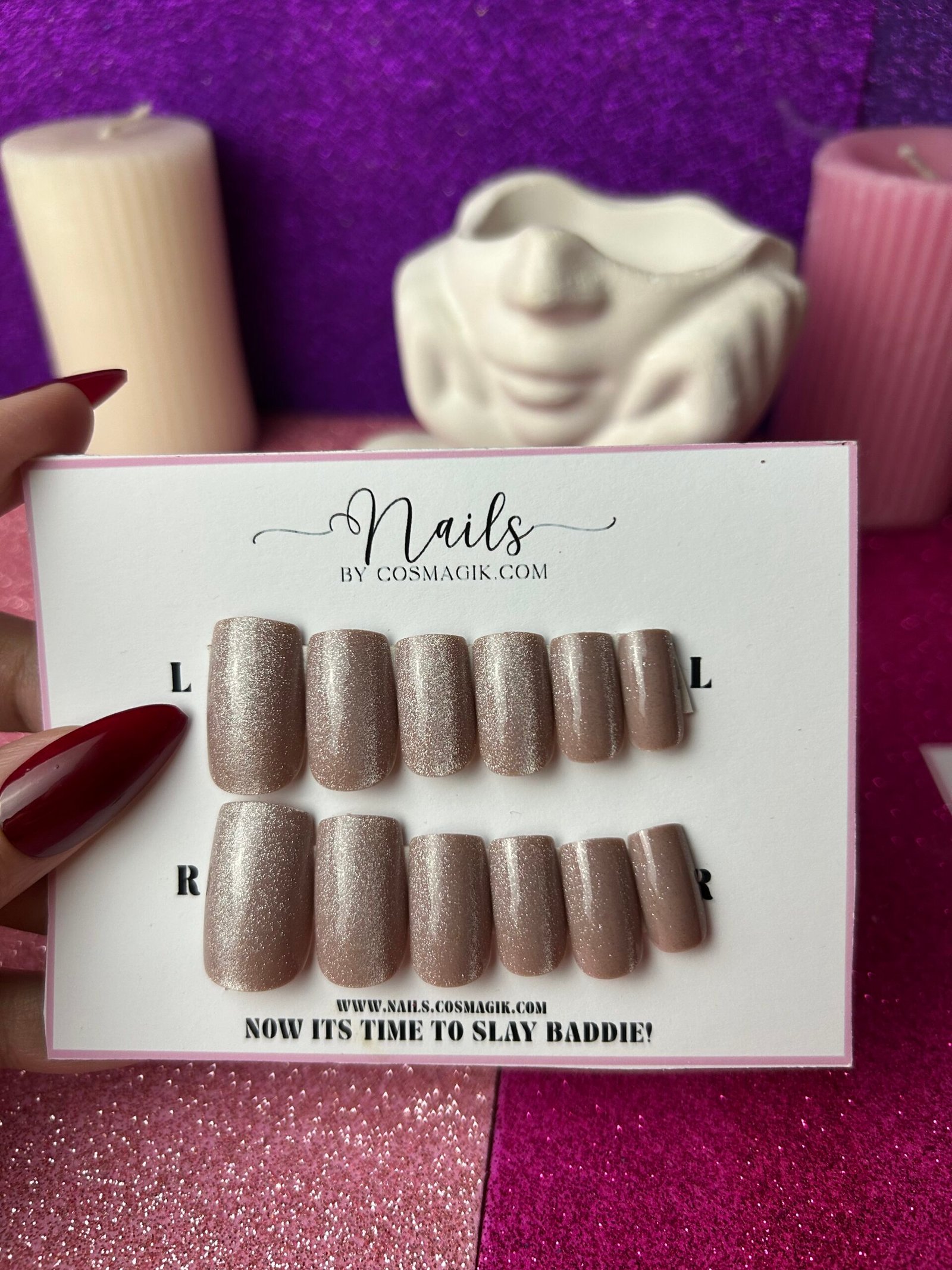 Smokey Quartz Cat Eye Press-On Nails are for the girls who know how to serve silent luxury and dark feminine energy. The deep smokey tone paired with the magnetic cat-eye effect makes this set an instant classic — perfect for night outs, shaadis, and bold everyday looks.